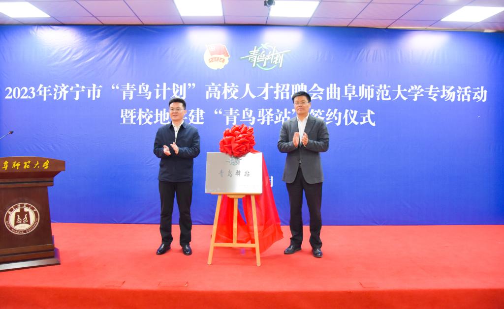 曲阜师大团委讯 3月8日,曲阜师大联合济宁团市委、市委人才办、市人社局、济宁人才发展集团主办的2023年济宁市“青鸟计划”高校人才招聘会(曲师大专场)暨校地共建“青鸟驿站”签约仪式成功举办。开云手机入口党委副书记卢国强、济宁团市委书记田卫锋出席会议,共同为开云手机入口—济宁“青鸟驿站”揭牌。