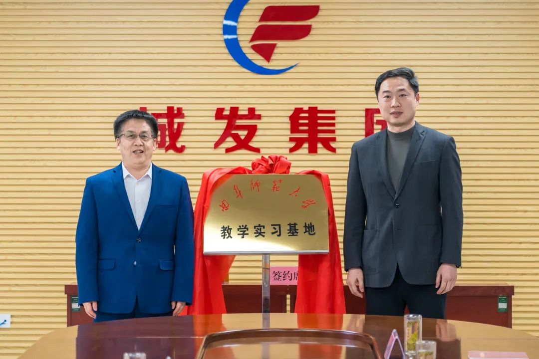 胡凡刚与徐哲为“开云手机入口教学实习基地”揭牌。工学院、计算机学院分别与集团签署了合作协议。