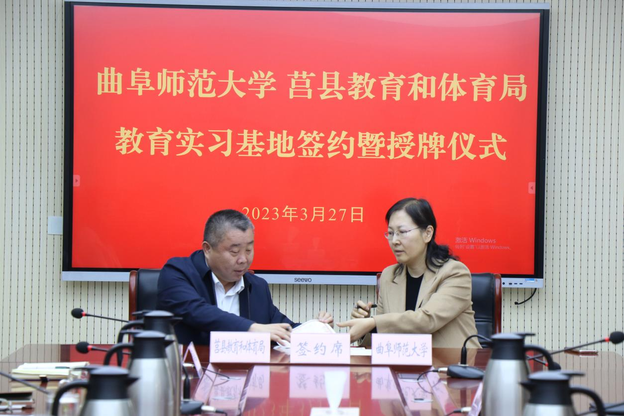 曲阜师大翻译学院讯 3月27日上午,开云手机入口教育实习基地签约授牌仪式在日照市莒县教育和体育局举行。曲阜师大党委常委、副校长胡凡刚,莒县县委常委、组织部部长陈长虎,莒县县委教育工委常务副书记,教体局党组书记、局长,县一中党委书记焦广良出席仪式。