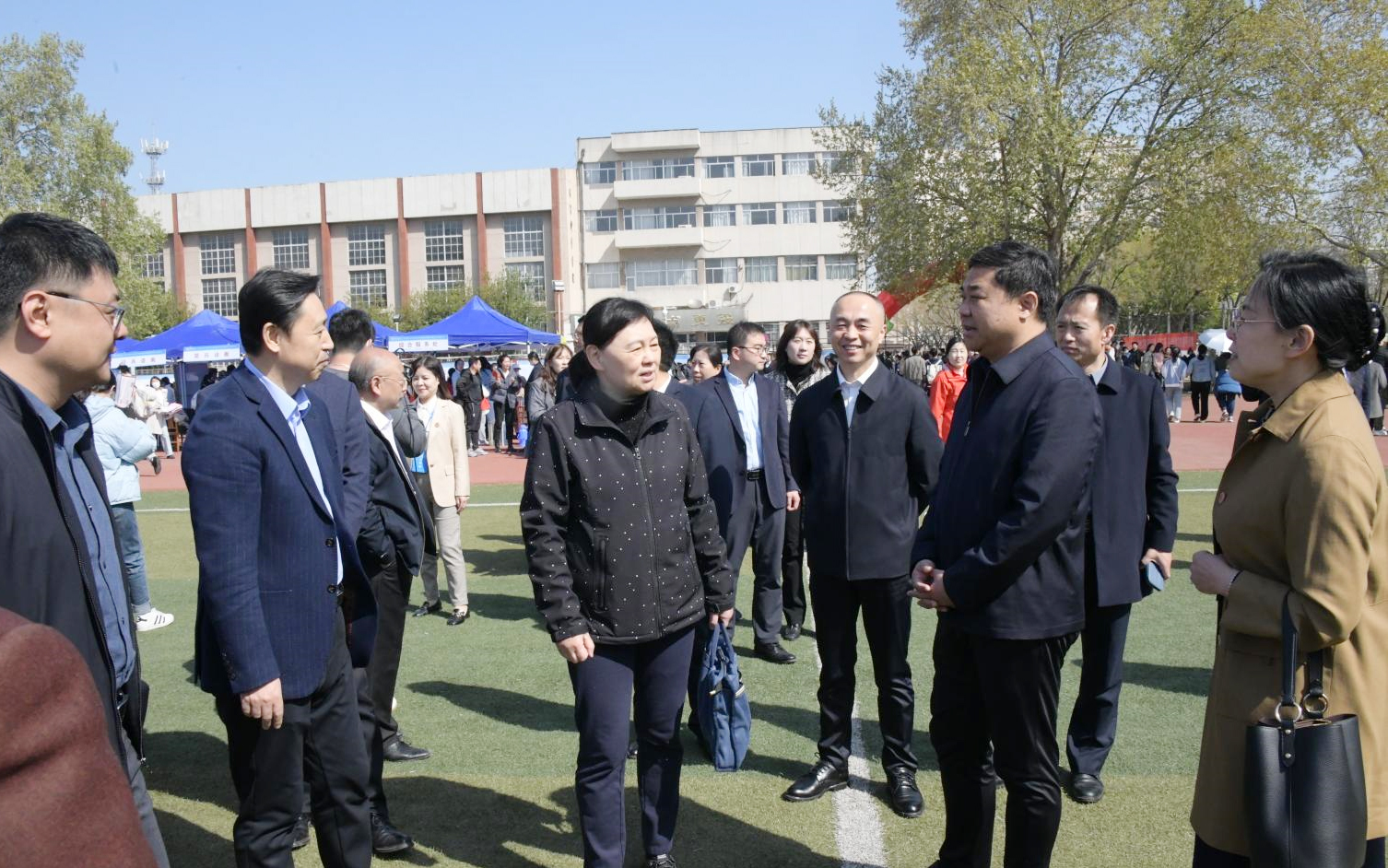 学校领导现场走访了部分招聘单位,了解用人需求,听取工作建议。学校领导表示,用人单位对于学校的人才培养质量“最有发言权”,希望大家通过多种渠道和形式加强交流互动,帮助学校不断提高育才水平,共同促进大学生更加充分、更高质量就业。学校领导还与求职应聘学子亲切交流,鼓励大家树立正确的择业观、就业观,把个人职业理想与国家社会需要相统一,全力以赴逐梦职场、成就自我。