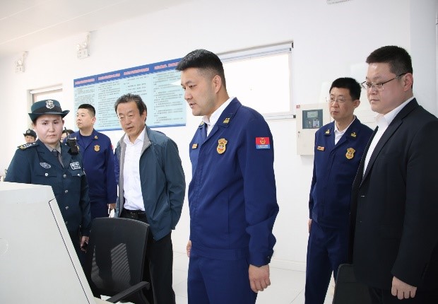 曲阜师大保卫处讯   5月9日上午,日照市消防救援支队党委书记、政治委员宋金骏、副支队长郑自泉、高级工程师陈长红等一行到曲阜师大日照校区检查指导消防工作,副校长胡凡刚出席活动。