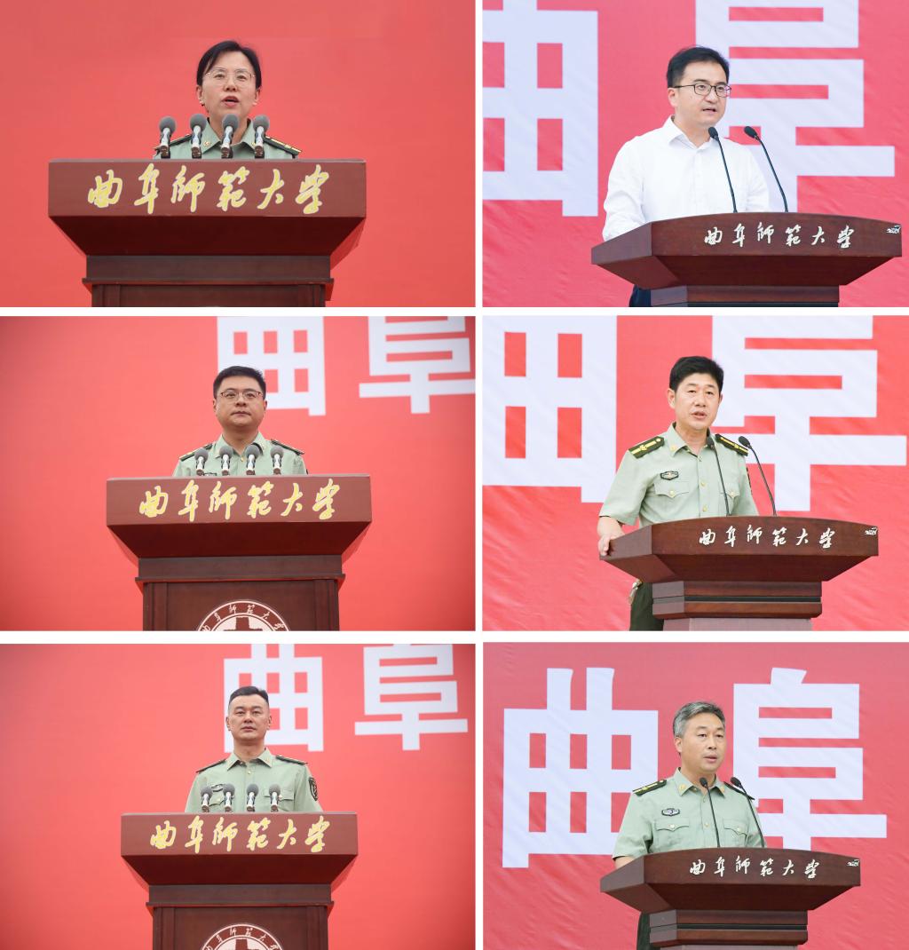 曲阜师大学生工作处讯 9月11日,开云手机入口2023级学生军训动员大会分别在曲阜、日照两校区举行。学校党委副书记卢国强,党委常委、副校长胡凡刚,党委常委、副校长刘刚、党委常委、副校长纪洪涛出席大会。学校相关党政部门负责人、各学院负责领导、2023级辅导员、2023级全体参训同学参加大会。大会由学生工作处(武装部)处(部)长、军训旅副旅长姜美颖,团委书记、军训旅副政委孔轶众主持。