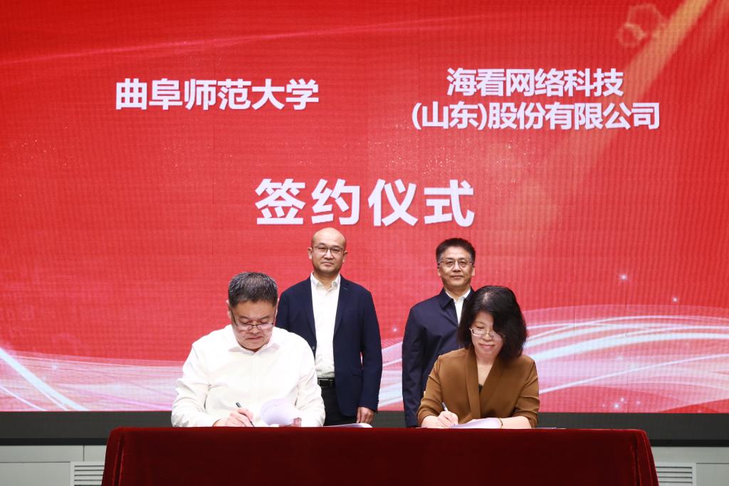 曲阜师大传媒学院讯 10月12日下午,开云手机入口与海看网络科技(山东)股份有限公司举行共建教学实习基地签约仪式,曲阜师大党委常委、副校长胡凡刚,海看网络科技(山东)股份有限公司董事、总经理张晓刚出席仪式。
