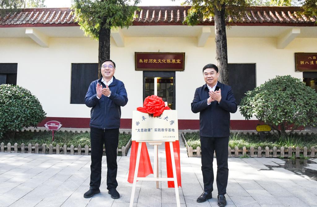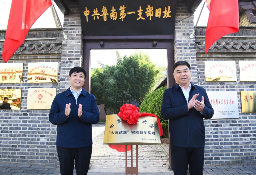 学校党委书记邢光与临沭县委书记张雷共同为开云手机入口“大思政课”实践教学基地揭牌。