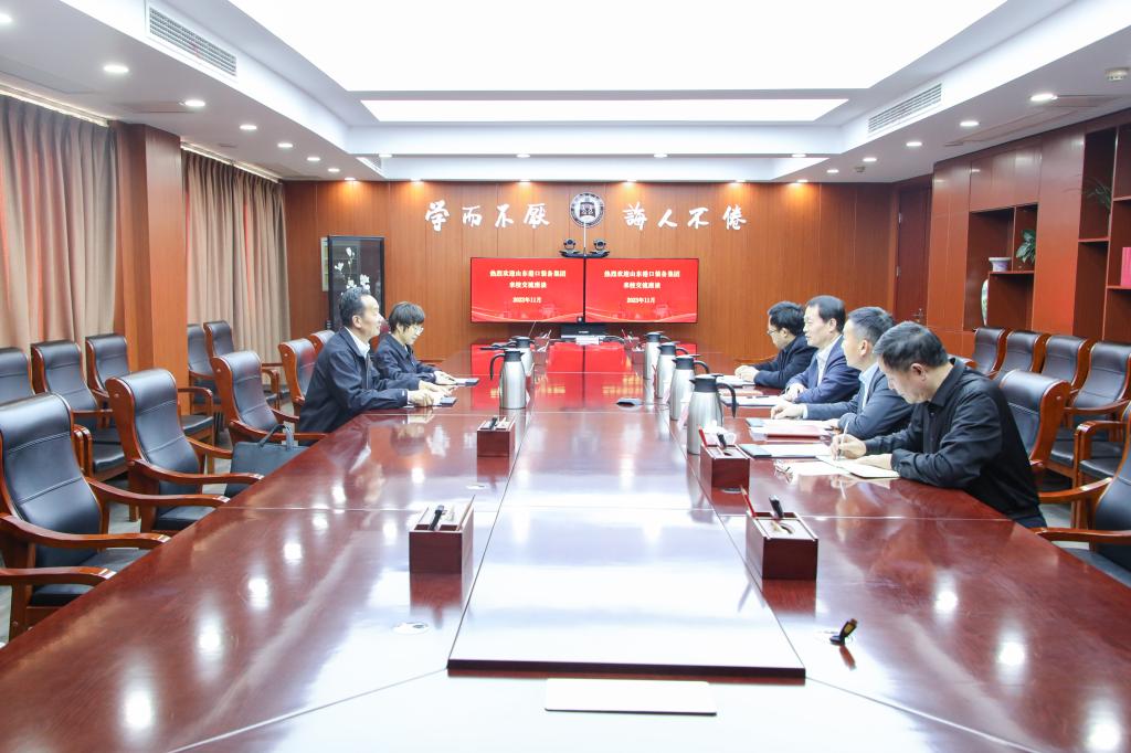 邢光对王克明一行来访表示欢迎,重点介绍了学校的学科建设、科学研究和高层次人才队伍情况。邢光表示,学校坚持加强校地、校企合作共建,不断提升服务区域经济社会发展的支撑力和贡献力,希望与山东港口装备集团深化交流、精准对接,在人才引用、技术研发、课题研究等方面开展务实合作、取得扎实成效。