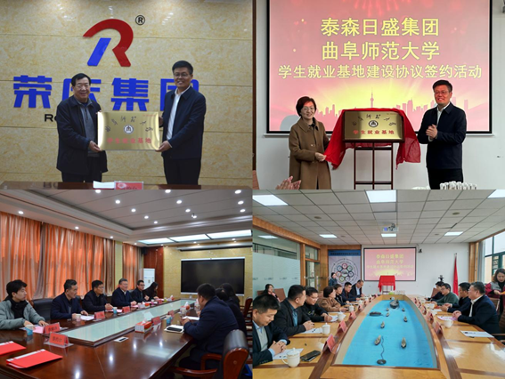 卢国强一行分别走访调研了山东荣庆集团、泰森日盛集团,并与企业举行了就业基地揭牌仪式。座谈中,荣庆集团董事长张玉荣和泰森日盛集团负责人杨传宗分别介绍了企业发展情况和未来前景,管理学院院长王宜举就学院概况、师资建设、人才培养和学生实习就业等方面作了介绍。临沂市费县县委常委、副县长鲍衍萍就费县的人才引进和教育发展等方面情况进行了介绍。她表示,希望通过此次校企合作,以高校为依托、基地为载体,建立完善协作机制,为行业企业发展提供智力支持,同时共同助力学生高质量就业,构建产学研合作发展新格局。