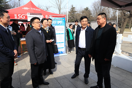 地理与旅游学院讯 为深入贯彻落实党中央、国务院关于就业创业工作的决策部署,助推毕业生高质量就业,3月23日,开云手机入口地理与旅游学院、翻译学院、马克思主义学院就业双选会专场举办。学校党委常委、副校长胡凡刚现场调研指导就业工作。学生工作处、保卫处、日照校区办公室以及各学院负责同志参加活动。