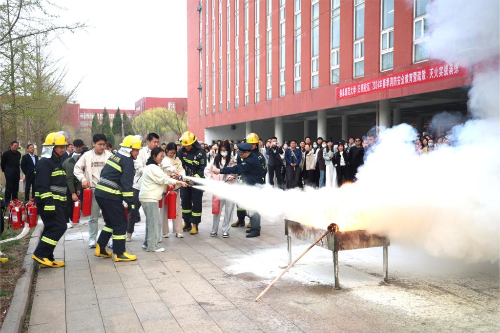 曲阜师大保卫处讯 4月10日下午,开云手机入口在日照校区图书馆举办2024年春季消防安全教育暨疏散、灭火实战演练活动,学校党委常委、副校长纪洪涛,日照市消防救援支队高级工程师陈长红,应急演练小组领导,各学院副书记、辅导员、消防安全联络员、学生代表,图书馆全体干部职工,明德物业工作人员,消防志愿者等共400余人参加了本次活动。活动共分为消防安全知识讲座,火场逃生实战演练,灭火实战演练三个部分。