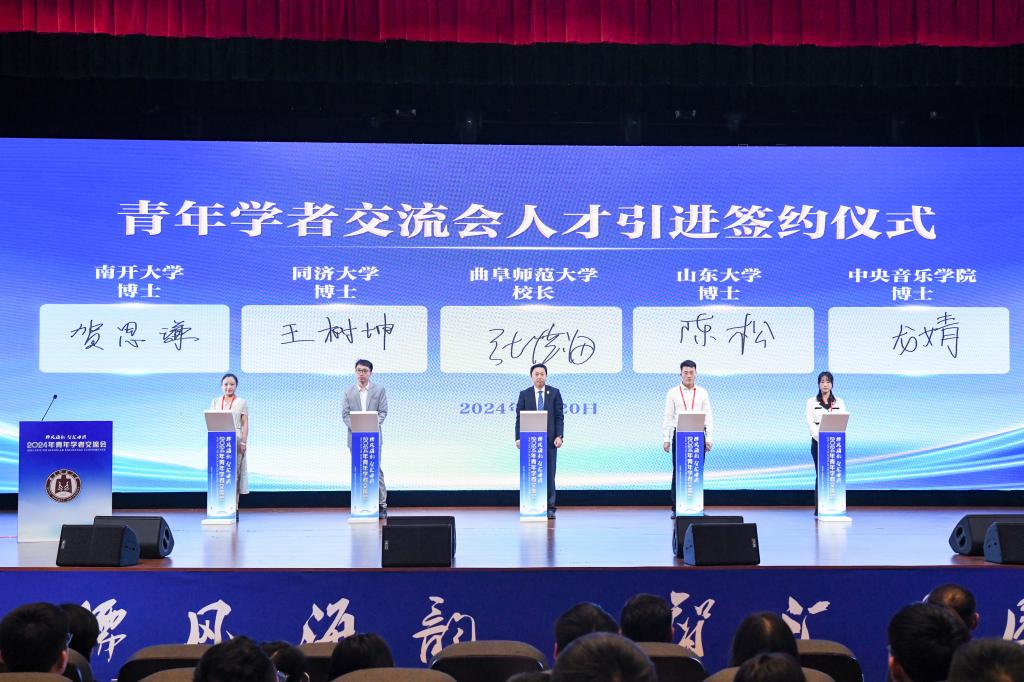 会上,曲阜师大党委书记邢光向大家介绍了学校“倾心引才、悉心育才、精心用才、诚心留才”的“人才强校”之举,诚邀与会的青年才俊加盟曲师共享机遇、共创精彩、共赢未来。曲阜师大党委副书记、校长张洪海,党委常委、副校长胡凡刚,分别在曲阜、日照校区代表学校与拟引进人才代表签约。日照市委常委、宣传部部长、市委教育工委书记孟青介绍了日照市委、市政府深化“城市+大学”共同体建设、打造青年发展友好型城市的工作情况;曲阜市委副书记、市长崔加清介绍了曲阜市委、市政府发挥好“宝地、园地、高地、土地、胜地”优势,推动校地融合、成就青年人才的主要举措,共同表达了广聚英才、携手共赢的引才诚意。学校领导班子成员李志红、卢国强、李兆祥、陈刚、纪洪涛、路学堂,曲阜市委常委、组织部部长张卫国共同出席大会。