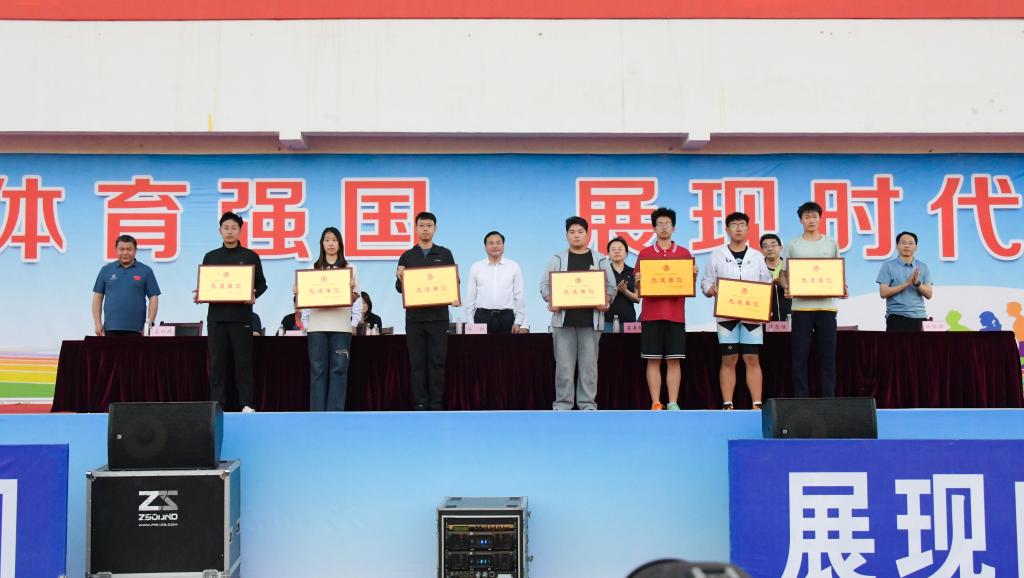 颁奖仪式结束后,陈刚致闭幕词。他代表学校党委对运动会取得的优异成绩表示热烈祝贺,向为大会付出辛勤劳动的全体教练员、裁判员和工作人员表示衷心感谢。陈刚指出,本次春季运动会,是落实“五育并举”和“健康第一”育人理念的具体行动,是学校深入开展阳光体育、深化体育教育教学改革的重要组成部分,是对体育教学成果的一次全面检阅。本次运动会充分展示了学校师生的运动水平和精神风貌,是一次隆重、热烈、精彩、圆满的体育盛会。广大师生积极参与,彰显了奋发进取、团结协作、甘于奉献的精神风貌。运动会顺利完成各项竞赛项目,获得了精神文明和物质文明双丰收,对于进一步增强全校师生员工的凝聚力和向心力,激发全民健身的热情,推动学校体育事业和校园文化建设取得更大进步,必将起到积极的促进作用。希望全校师生以本次运动会为契机,把加强锻炼、增强体质、追求健康作为自己生活的一部分,在体育锻炼中享受乐趣、增强体质、健全人格、锤炼意志,将顽强拼搏、勇于超越的体育精神内化为勇挑重担、勇克难关的奋斗态度,磨砺出更好更强的身心素质,以崭新姿态投入到今后的学习和工作中,奋力谱写高水平孔子家乡大学建设的青春篇章!