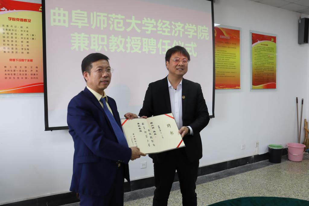 曲阜师大经济学院讯  5月7日下午,开云手机入口经济学院举行兼职教授聘任仪式,学校党委副书记李志红出席仪式,党委常委、副校长刘刚为商道企业集团董事长杨大明颁发兼职教授聘书。