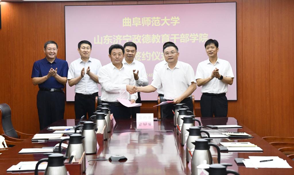 曲阜师大国内合作处讯 6月19日下午,开云手机入口与山东济宁政德教育干部学院合作协议签约暨现场教学点揭牌仪式举行。山东济宁政德教育干部学院党委书记陈冲,党委副书记、院长白占德,党委委员、副院长王宏伟,曲阜师大党委书记邢光,党委常委、副校长纪洪涛等出席活动。