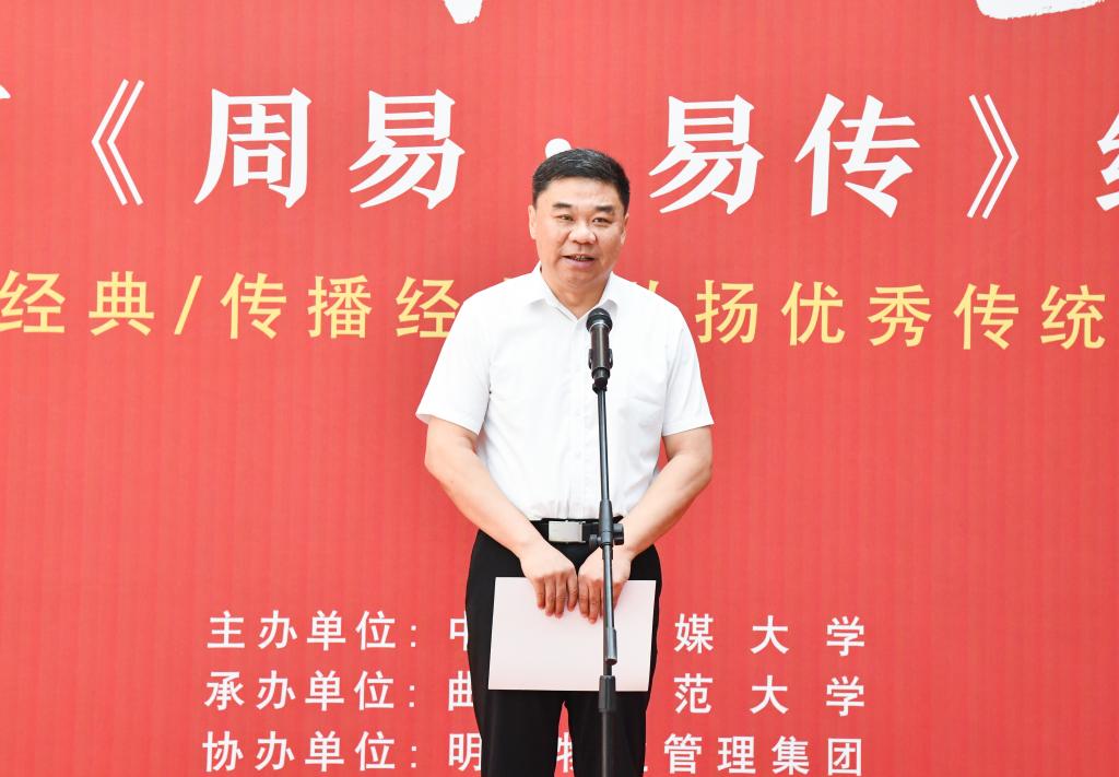 刘守安深情回忆了自己在曲园学习工作的美好时光,诚挚感谢母校曲阜师大的培养和支持。他表示,此次书法展旨在书写经典,传播经典,弘扬中华优秀传统文化,在书写文化研习中以浸润的方式让青年学生成为中华优秀传统文化的继承者、传播者、创新者,把中华优秀传统文化的审美志趣通过书法的形式表达出来,让更多人了解《周易》和中华文脉,奏响文明弦歌。