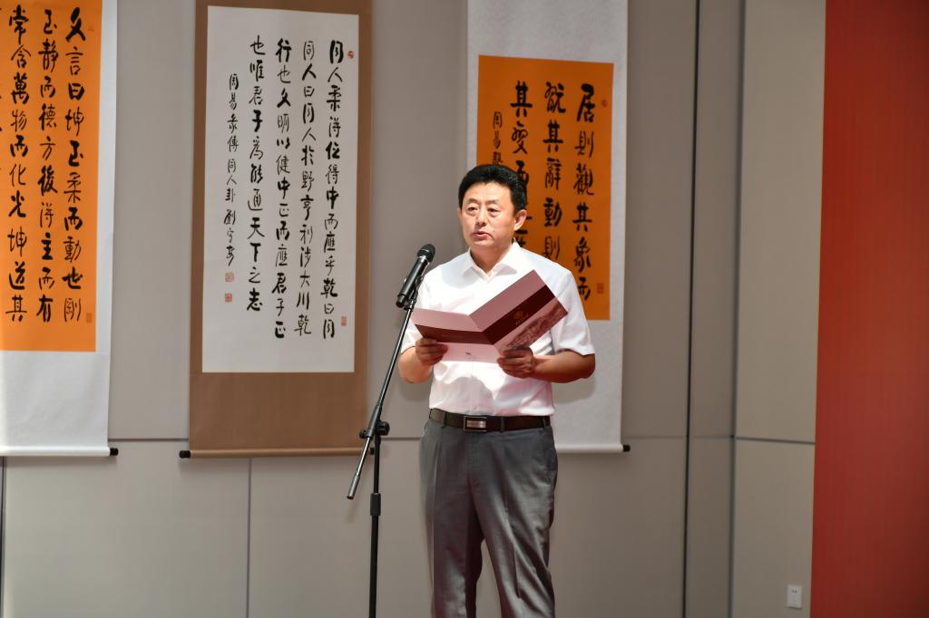 邢光在致辞中向莅临展览的各位领导和嘉宾表示热烈欢迎,向刘守安校友对学校书法学科建设、对校友工作的大力支持表示衷心感谢。邢光表示,周易经典文辞的书法呈现,是刘守安教授又一重要的创作实践和探索,是传承弘扬中华优秀传统文化的生动实践,彰显着深耕齐鲁人文沃土、勇担新的文化使命的时代担当,体现着刘守安教授的创新精神和心境格局。希望各位嘉宾和全体师生,走进刘守安教授的周易经典文辞书写,感悟《易经》智慧,感悟刘守安教授书法的渊雅端重、穆如清风。