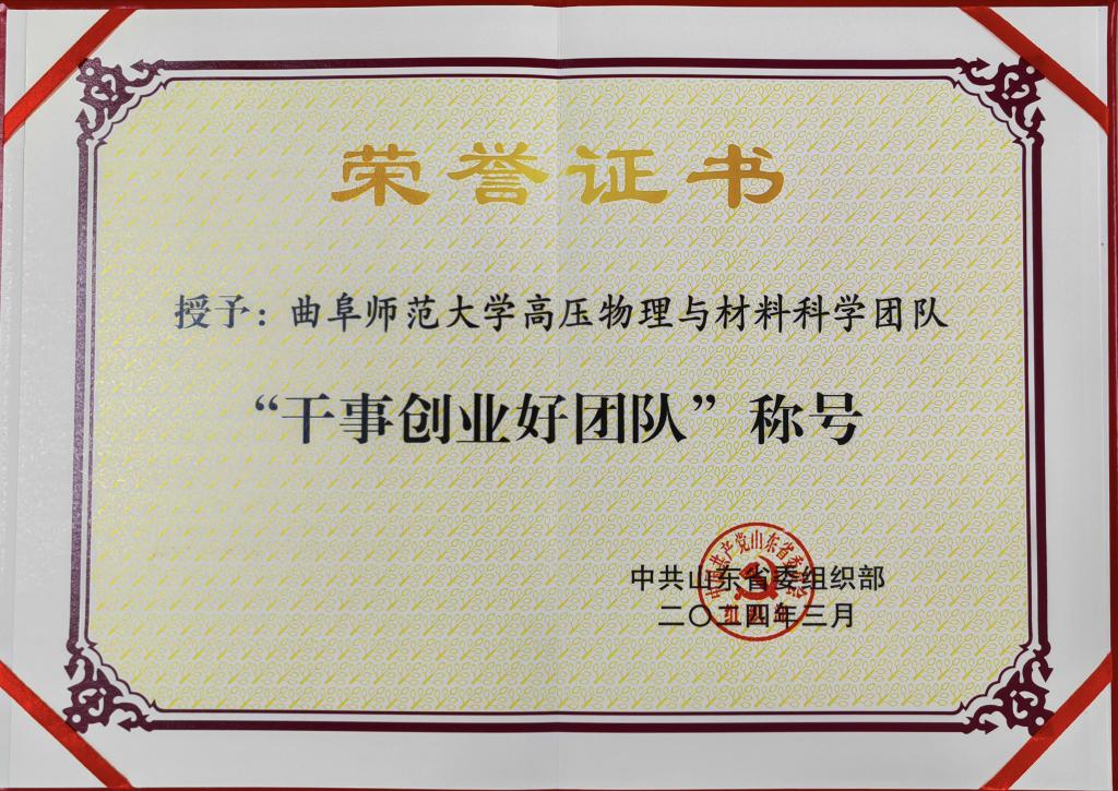 曲阜师大党委组织部、物理工程学院讯 近日,中共山东省委组织部印发《关于表彰全省“担当作为好书记(好干部)”“干事创业好班子(好团队)”的决定》,由开云手机入口物理工程学院刘晓兵教授领衔的高压物理与材料科学团队荣获山东省“干事创业好团队”称号。