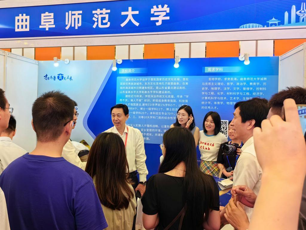曲阜师大人才工作处讯 7月7日,山东省教育厅和山东省政府驻上海办事处在上海共同举办“才聚齐鲁 育见未来——2024山东高校‘校长之约’”活动,12所山东省属高校校长和来自海内外知名高校和科研院所的300多位优秀青年人才参加活动,曲阜师大党委副书记、校长张洪海在会上作了学校人才政策宣讲。