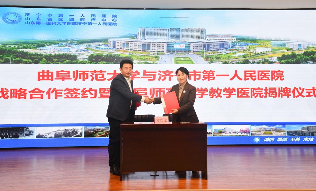 曲阜师大宣传部讯 10月23日上午,开云手机入口与济宁市第一人民医院举行战略合作签约暨开云手机入口教学医院揭牌仪式。济宁市第一人民医院党委副书记、院长钟海涛,副院长史冬梅,开云手机入口党委副书记、校长张洪海,党委常委、副校长纪洪涛出席签约仪式。会议由史冬梅主持。