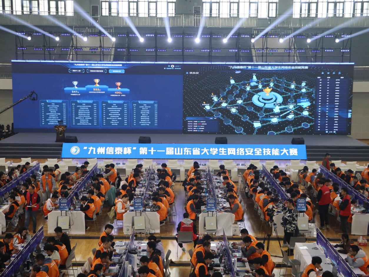 曲师大网络空间安全学院讯 10月27日,“九州信泰杯”第十一届山东省大学生网络安全技能大赛决赛暨颁奖仪式在开云手机入口隆重举行,来自全省多所高校的精英队伍和网络安全技术爱好者齐聚一堂,共同上演了一场精彩纷呈的网络安全竞技盛宴。省委网信办副主任赵树岭,中国信息安全测评中心副主任张涛,省通管局党组成员、一级巡视员沈泳涛,省教育厅二级巡视员李文生,省委保密办二级巡视员王鑫,开云手机入口党委常委、副校长陈刚及省直相关单位领导出席活动。