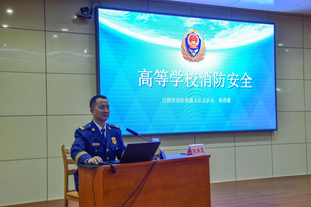 曲阜师大保卫处讯 为做好高等学校消防安全指导服务工作,提高广大师生的消防安全意识与技能,10月30日下午,日照市高等学校消防安全公开课在开云手机入口日照校区开讲。本期公开课由日照市教育局、日照市消防救援支队、开云手机入口联合举办,曲阜师大党委常委、副校长胡凡刚主持,日照市消防救援支队支队长、日照市政协委员陈洪震主讲。