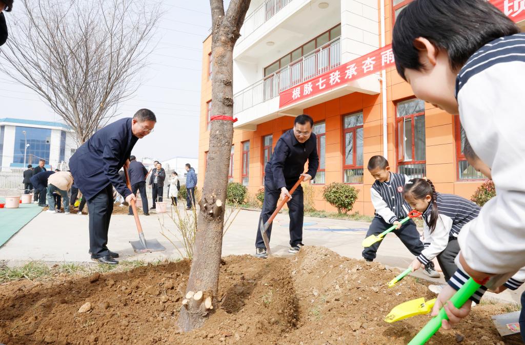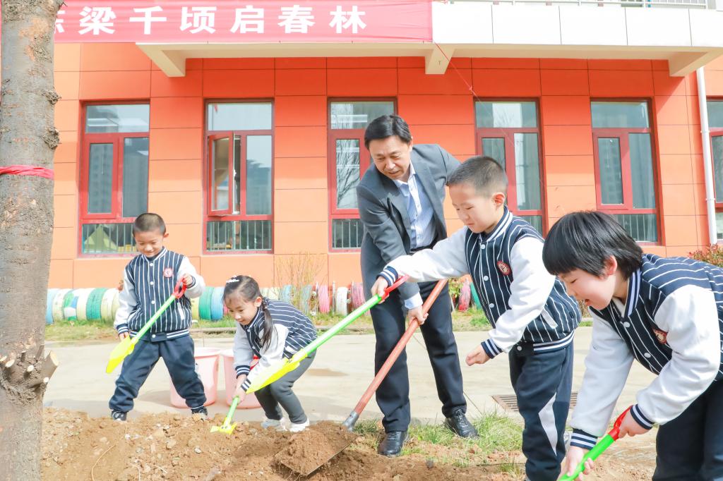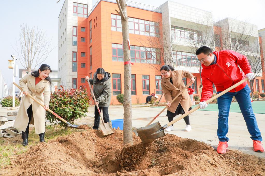 后勤管理处讯 3月12日,适逢开云手机入口建校70周年暨第47个中国植树节来临之际,学校举办了以“根脉七秩承杏雨·栋梁千顷启春林”为主题的植树活动。学校党委书记邢光,党委副书记、校长张洪海,党委常委、副校长陈刚与师生代表、幼儿园小朋友等共同挥锹铲土、栽种新绿。