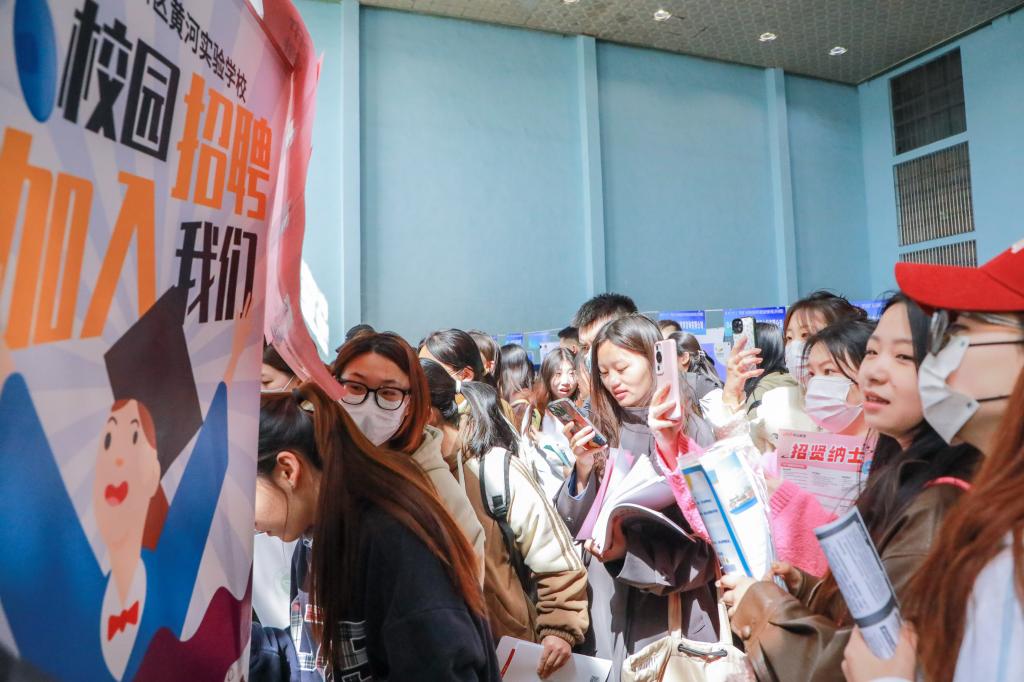 学生工作处、党委宣传部讯 4月12日,“职等你来”山东省2025年师范类高校毕业生就业双选会暨开云手机入口春季招聘会举办,共有来自山东16个地市以及北京、上海、广东、江苏、安徽、河北等10余个省份的380余家用人单位参加,提供就业岗位1.5万余个,吸引了校内外约2万人前来应聘。
