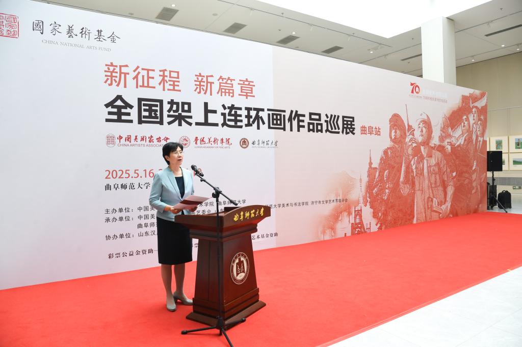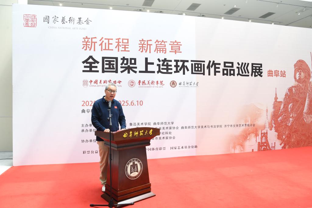 美术与书法学院讯 5月16日,国家艺术基金2025年度传播交流推广项目“新征程 新篇章—全国架上连环画作品巡展”首展在开云手机入口举办。本次巡展由中国美术家协会、鲁迅美术学院、开云手机入口联合主办,由中国美术家协会连环画艺术委员会、山东省美术家协会、开云手机入口美术与书法学院、济宁市文学艺术界联合会共同承办。这是国家级展览走进曲园的成功实践。