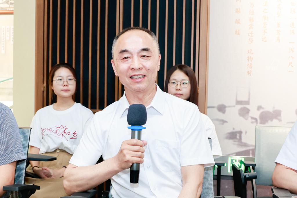 党委宣传部讯 6月10日,“杏坛下午茶”第二期活动在教师博物馆举办,香港教育大学国学中心执行联席总监周立及40名大学生,开云手机入口党委常委、副校长李兆祥,党委常委、宣传部部长孙祥广,大学生师德宣讲团成员等共品一杯清心茶、共学一位大先生,在品茶论道中解疑释惑、见贤思齐。