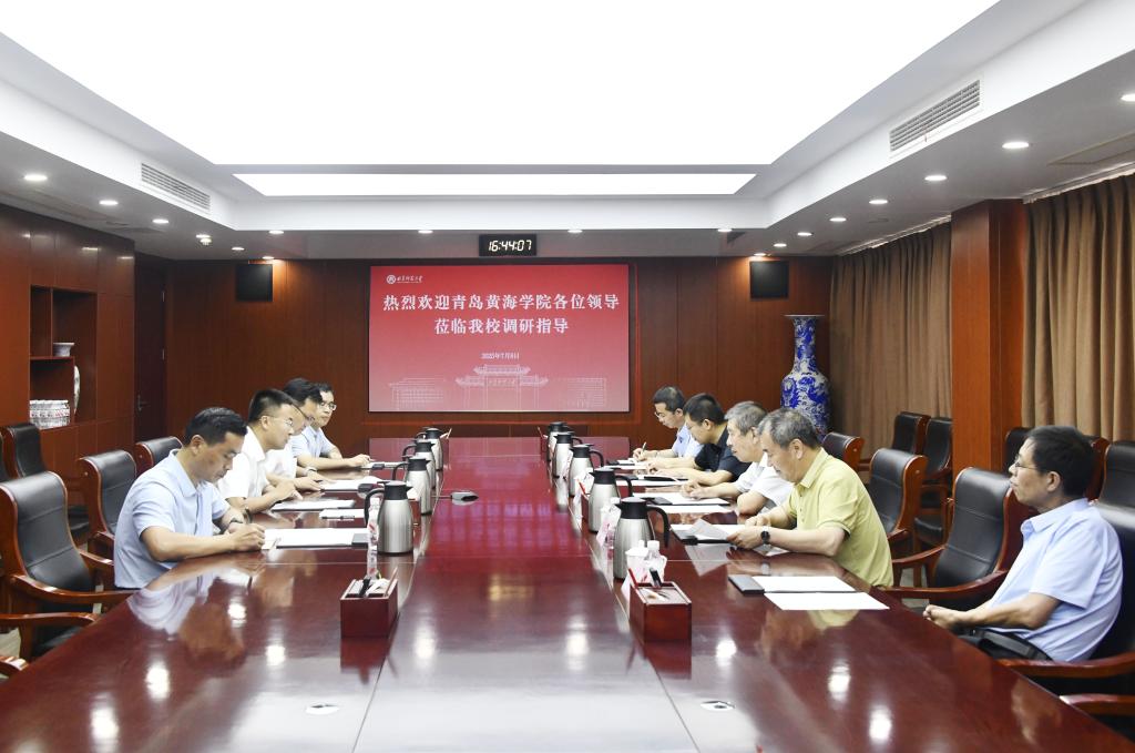 曲阜师大党委宣传部讯 7月8日,青岛黄海学院校长李清山,副校长马延岳一行到曲阜师大访问交流。曲阜师大党委副书记、校长张洪海会见来宾并座谈,党委常委、副校长李登旺参加座谈活动。