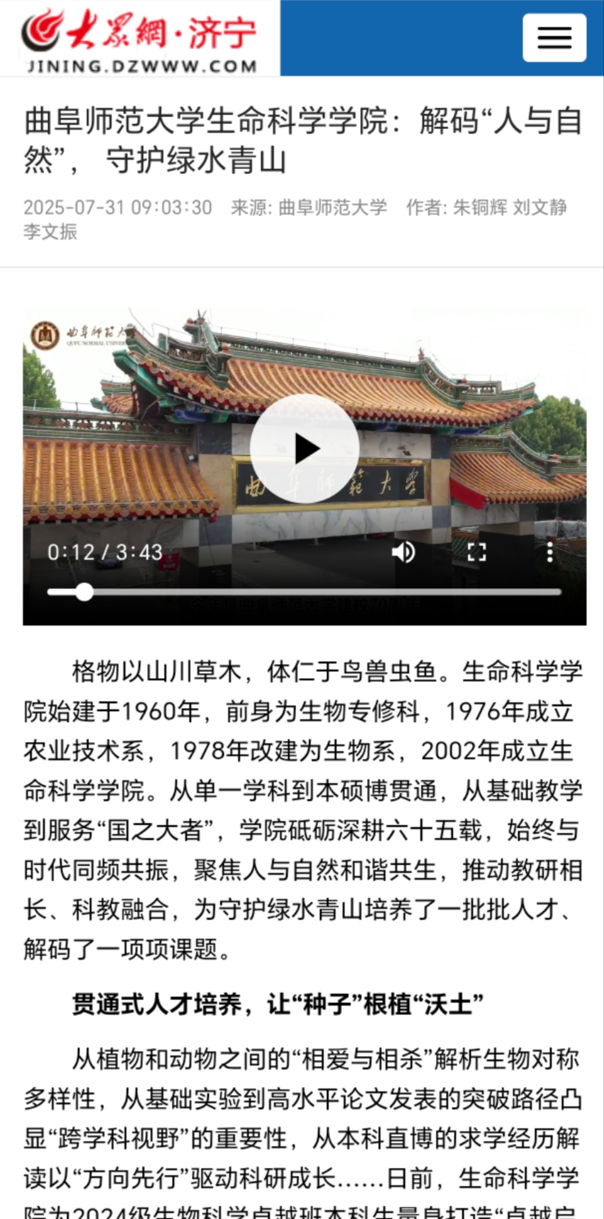 报道链接:https://jining.dzwww.com/xsq/qfs/202507/t20250731_16282666.htm