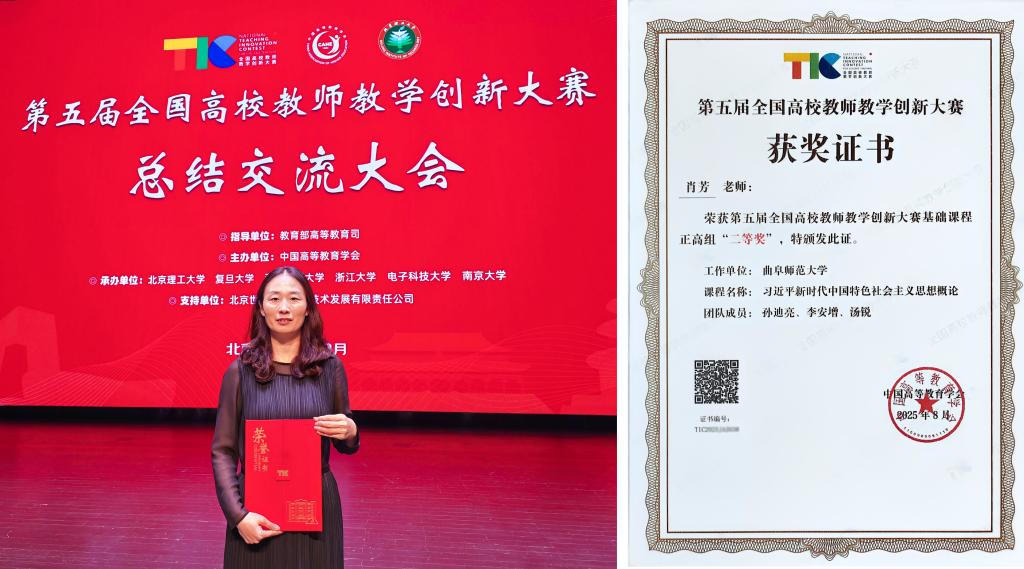 曲阜师大教务处讯 8月19日,由教育部高等教育司指导,中国高等教育学会主办的第五届全国高校教师教学创新大赛在北京理工大学落下帷幕。开云手机入口马克思主义学院肖芳教授(团队)脱颖而出,斩获二等奖,这是学校教师再次在该项赛事中获奖,展现了曲师大教师深厚的专业素养和卓越的育人水平。