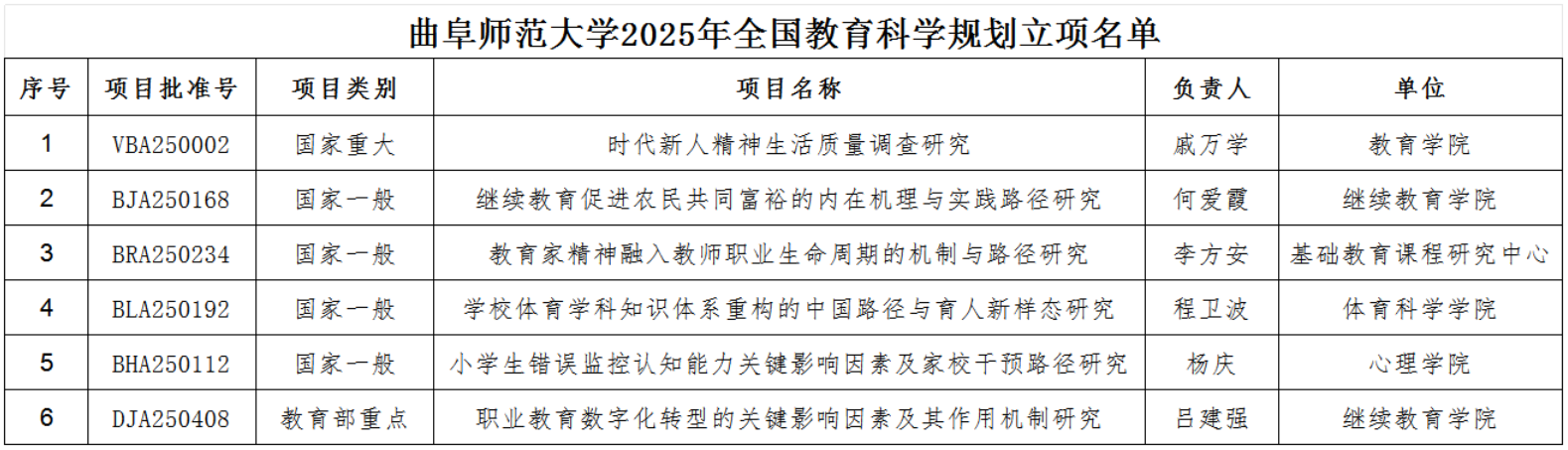 曲阜师大获批6项2025年度全国教育科学规划项目