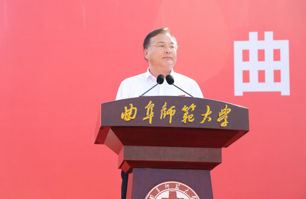“曲师校友以‘犁牛之子’的坚韧品格,奉献于社会的各领域,或闪耀于时代潮头,或默守于平凡岗位,皆是曲园精神最生动的诠释,共同为‘何以中国’的教育命题写下生动注脚。”张洪海说,同学们不仅是求知的学子,更是强国伟业的见证者、参与者和建设者,希望同学们胸怀“国之大者”,厚植家国情怀,时刻保持积极向上的心态,培养坚韧不拔的意志,将个人理想融入民族复兴伟业,在服务国家战略需求中实现人生价值。