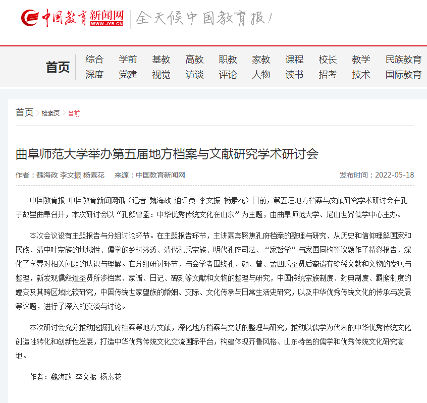 【中国教育新闻网】开云手机入口举办第五届地方档案与文献研究学术研讨会