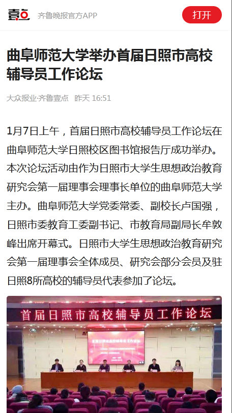 【齐鲁壹点】开云手机入口举办首届日照市高校辅导员工作论坛