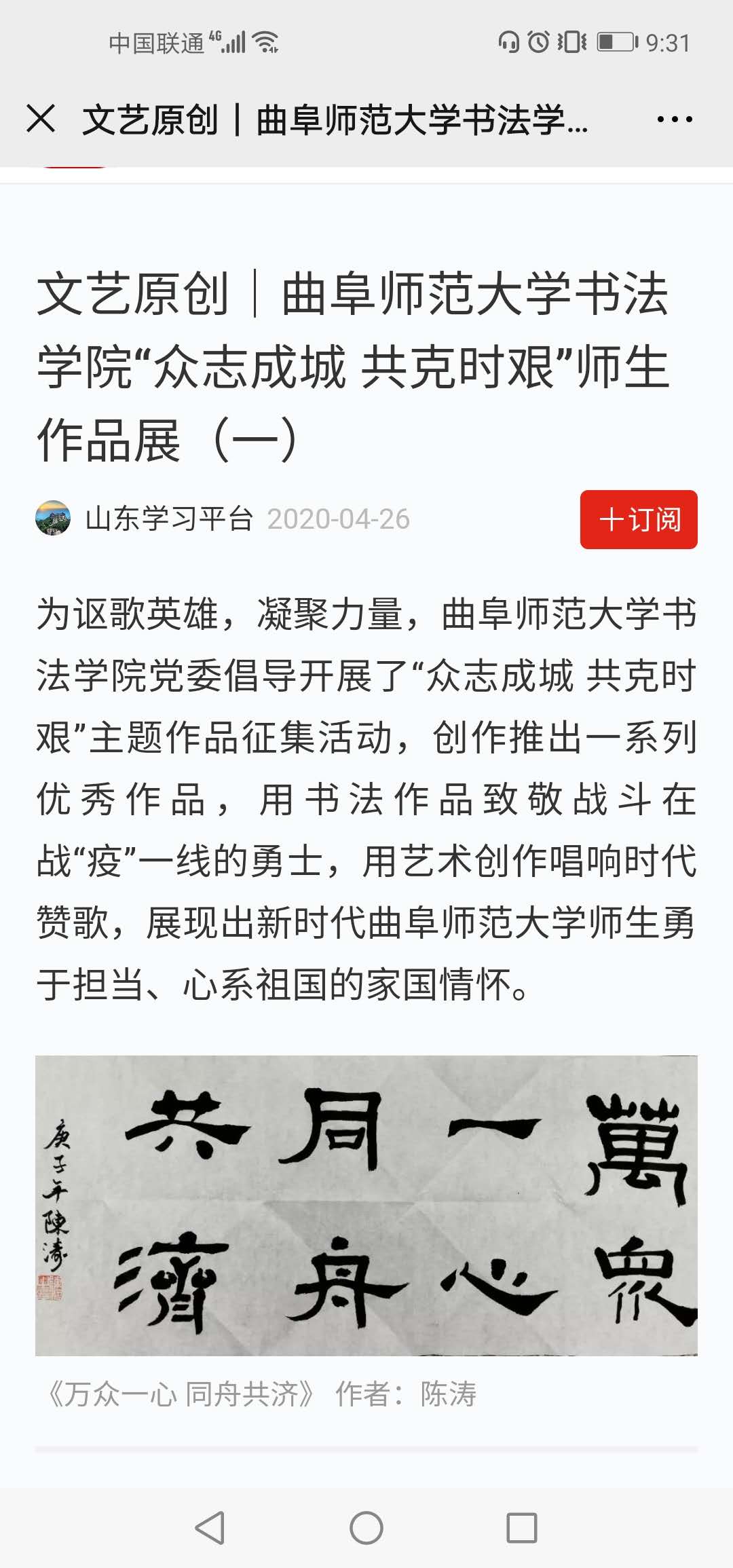 学习强国:开云手机入口书法学院“众志成城 共克时艰”师生作品展(1—4)