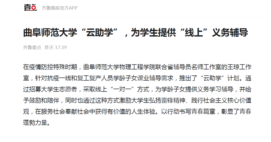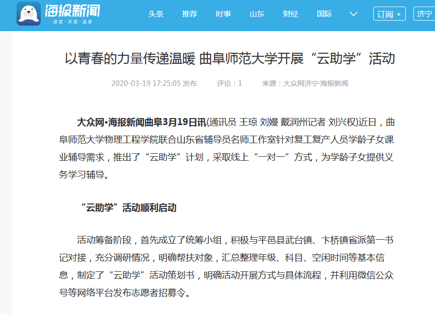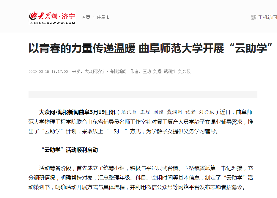 大众网报道链接:http://jining.dzwww.com/xsq/qfs/202003/t20200319_17312749.htm