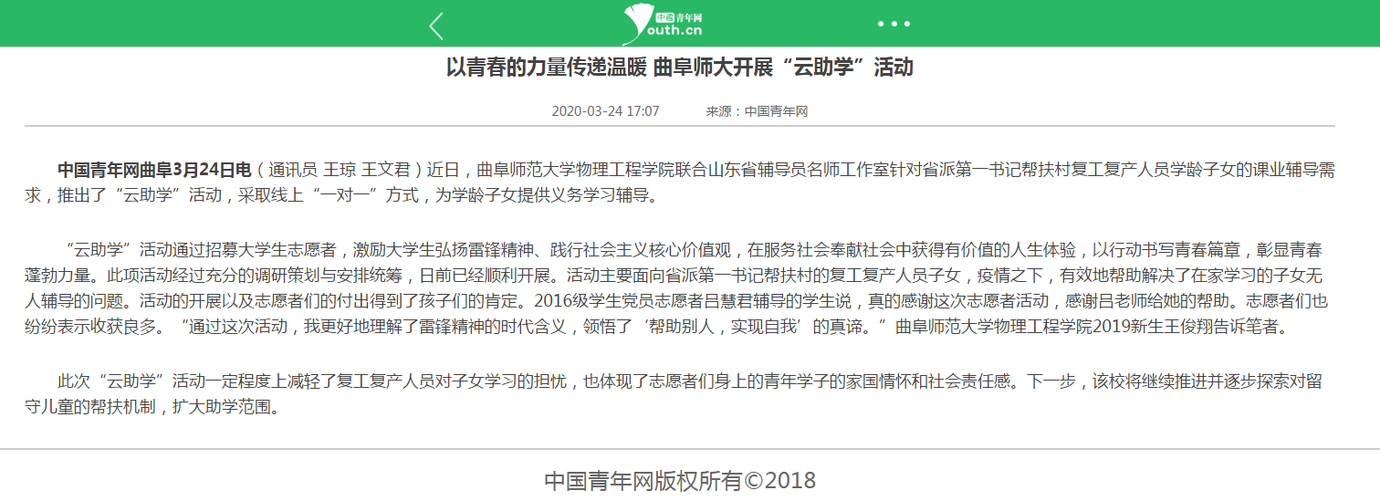 中国青年网报道链接:http://t.m.youth.cn/transfer/index/url/edu.youth.cn/jyzx/jyxw/202003/t20200324_12254129.htm