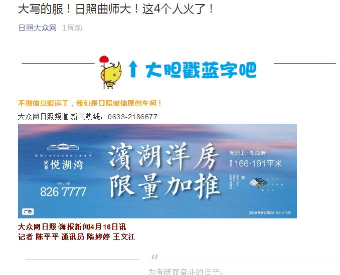 大众网报道链接:http://rizhao.dzwww.com/rzxw/201904/t20190426_16891988.html?from=timeline&isappinstalled=0