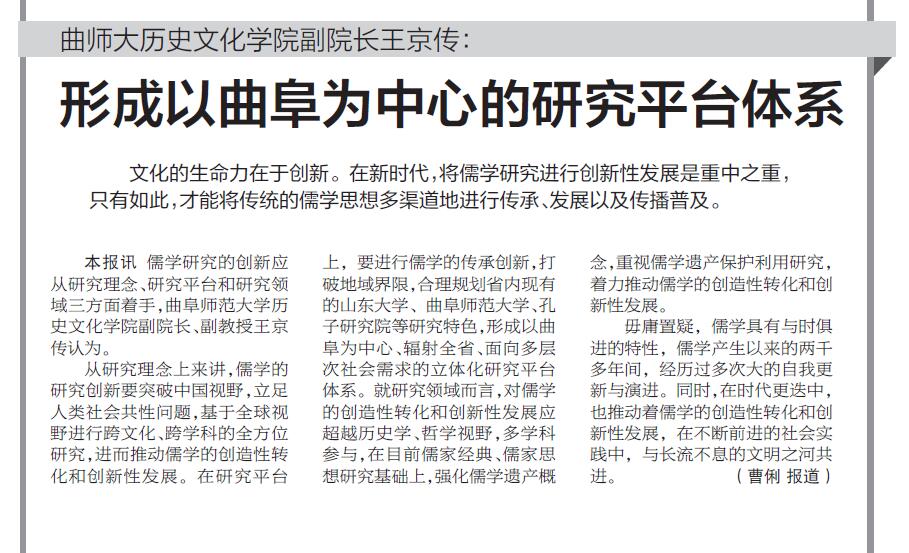 济宁晚报:曲师大王京传:形成以曲阜为中心的研究平台体系