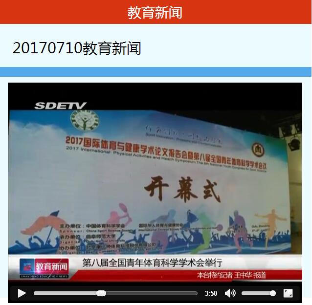 山东教育电视台:2017 国际体育与健康学术论文报告会暨第八届全国青年体育科学学术会举行