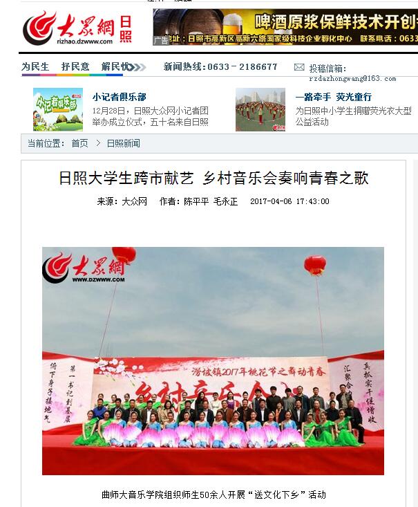 大众网:曲师大学生跨市献艺 乡村音乐会奏响青春之歌