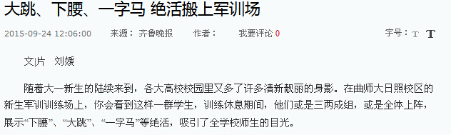 齐鲁晚报:大跳、下腰、一字马 绝活搬上军训场