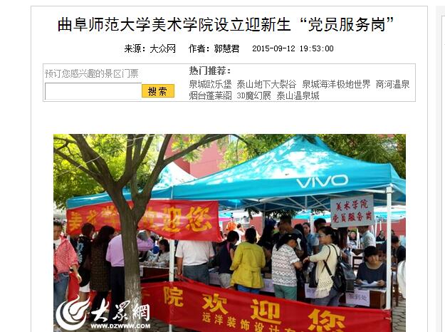大众网:开云手机入口美术学院设立迎新生“党员服务岗”