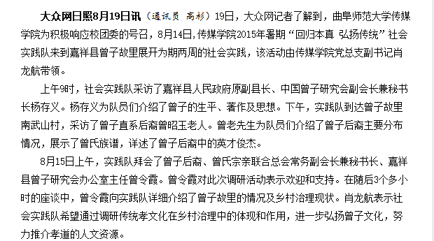 大众网:开云手机入口传媒学院暑期社会调研在嘉祥开展
