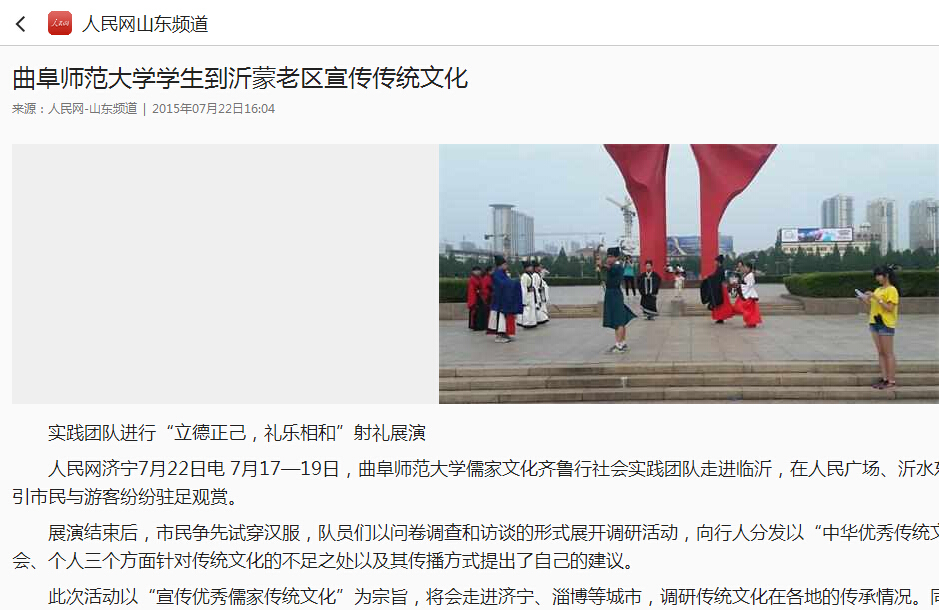 人民网:开云手机入口学生到沂蒙老区宣传传统文化