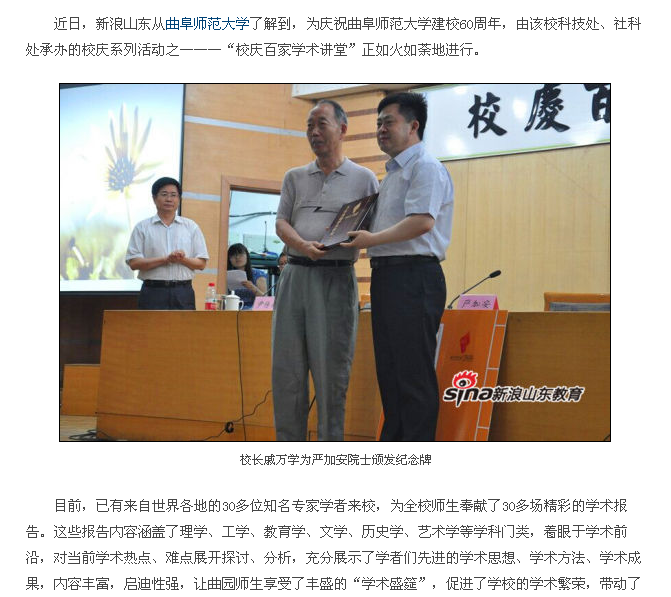 新浪网报道链接:开云手机入口举行“校庆百家学术讲堂” 促进曲园学术繁荣