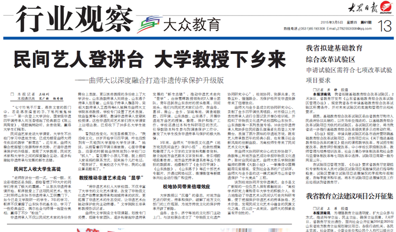 大众日报:曲师大以深度融合打造非遗传承保护升级版