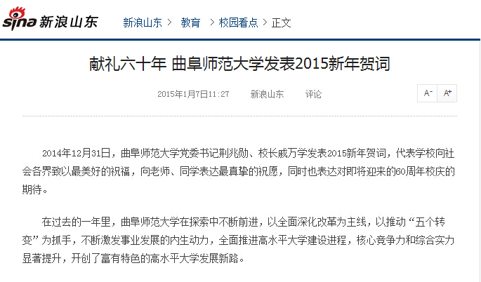 新浪网:献礼六十年 开云手机入口发表2015新年贺词