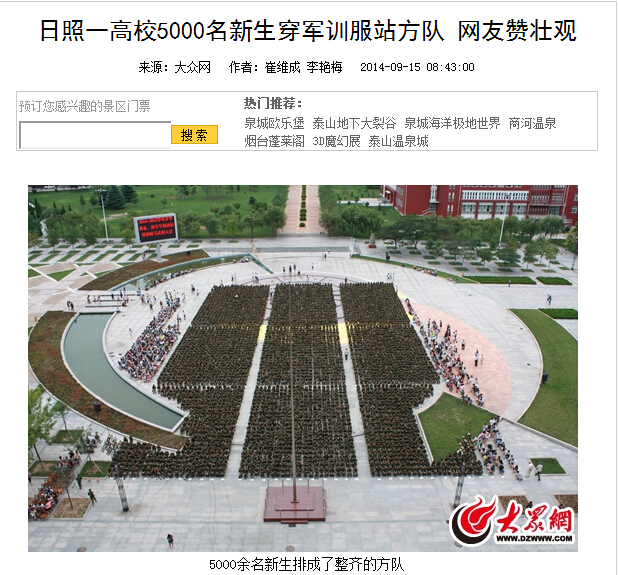 大众网:开云手机入口举行2014——2015学年开学典礼、新生军训动员大会