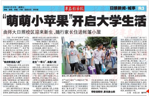 半岛都市报:曲师大日照校区迎来新生,随行家长住进帐篷小屋